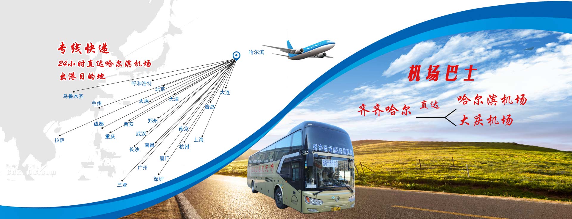 黑龍江天成運(yùn)業(yè)集團(tuán)齊齊哈爾客運(yùn)有限公司機(jī)場(chǎng)巴士往返于齊齊哈爾與哈爾濱太平國(guó)際機(jī)場(chǎng)間,全程運(yùn)行約3小時(shí)50分鐘。行程360公里,中途在大慶紅湖服務(wù)區(qū)???分鐘,大慶機(jī)場(chǎng)可上下。