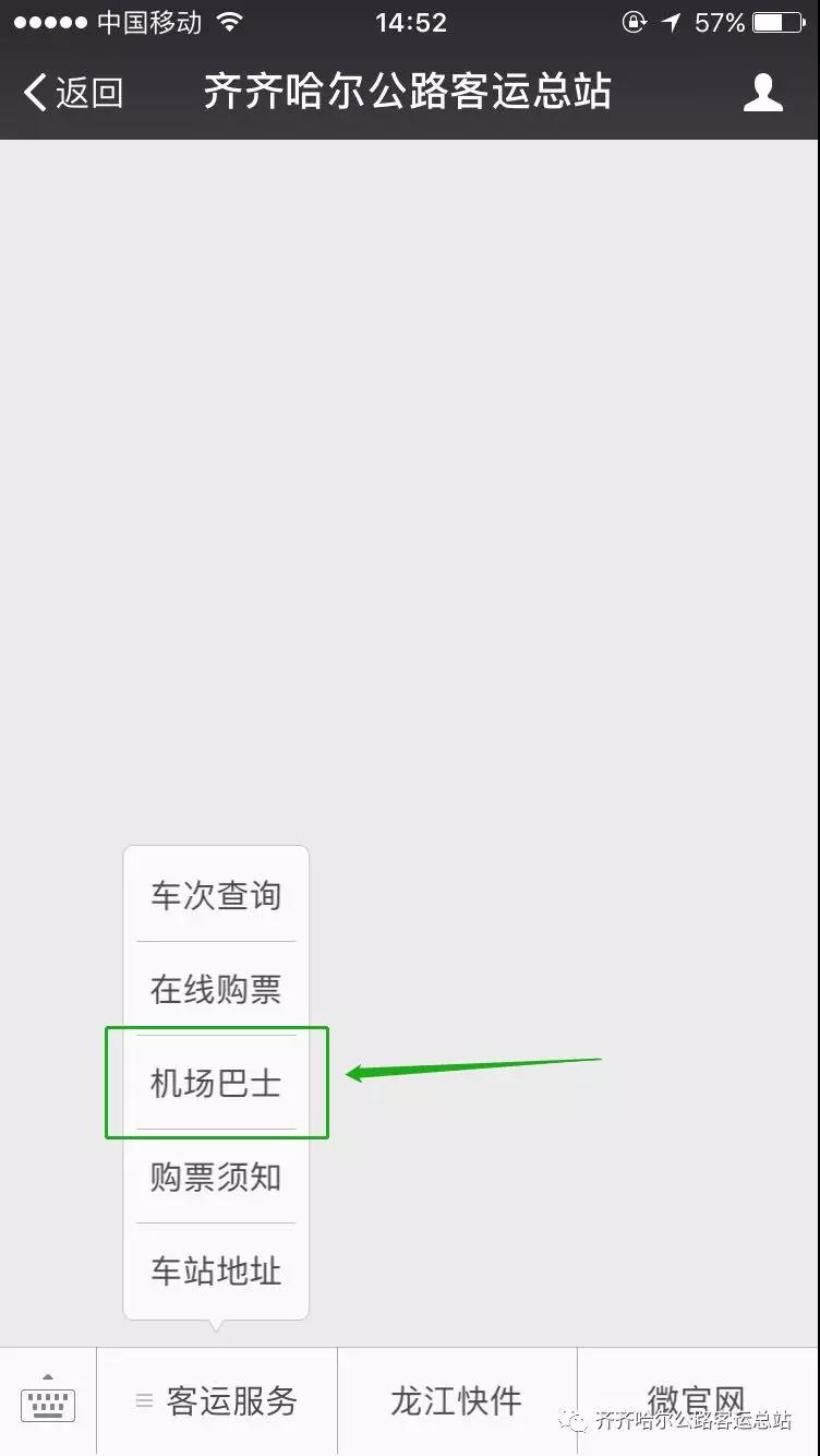 1.在微信里打開“齊齊哈爾客運總站”公眾號
