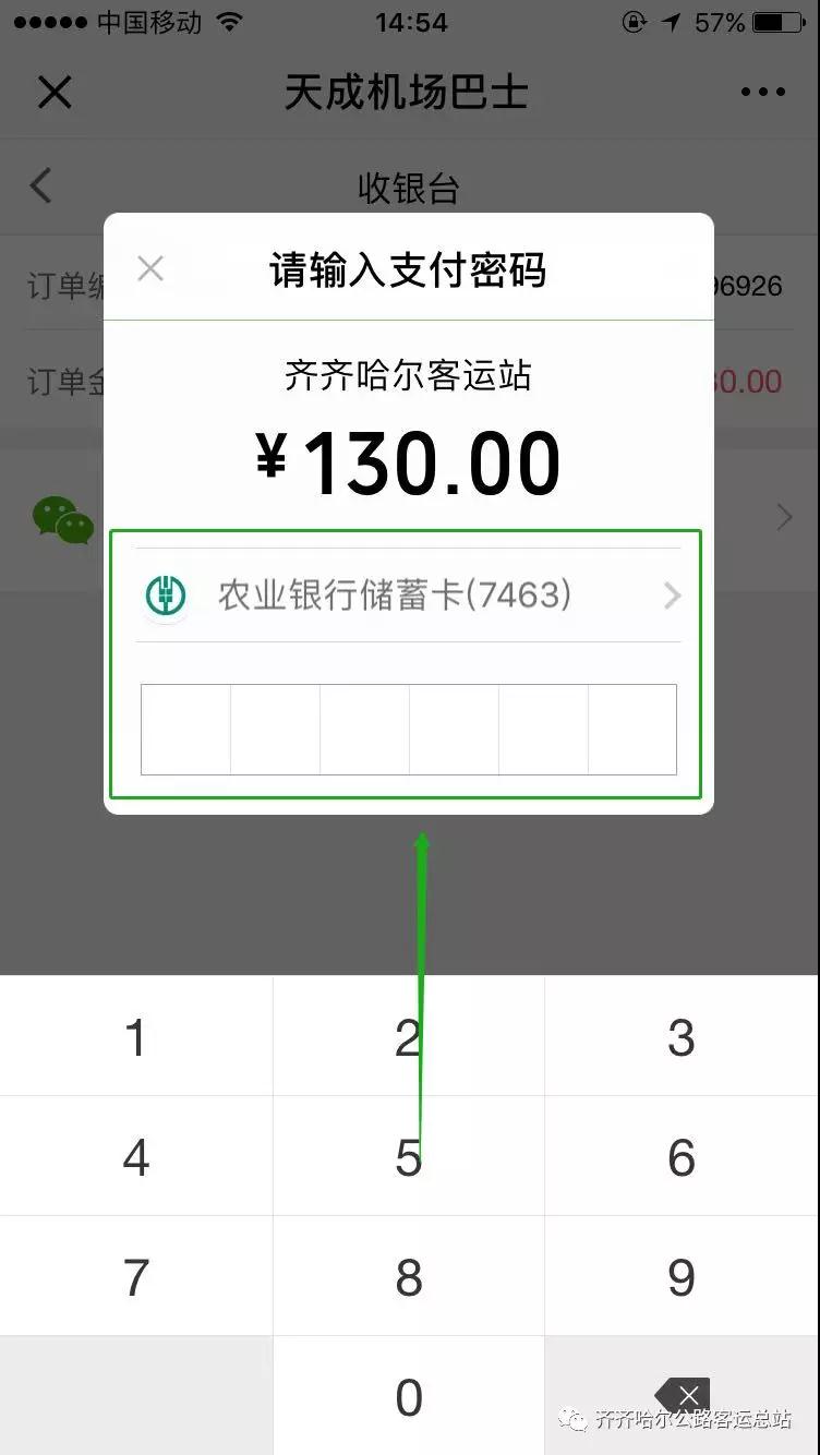 6.點擊微信支付。輸入支付密碼完成購票。