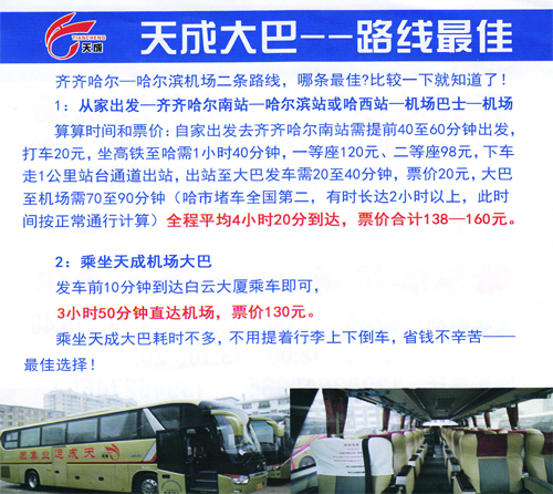 哈爾濱售票處:哈爾濱太平國際機場5號門,巴士售票處